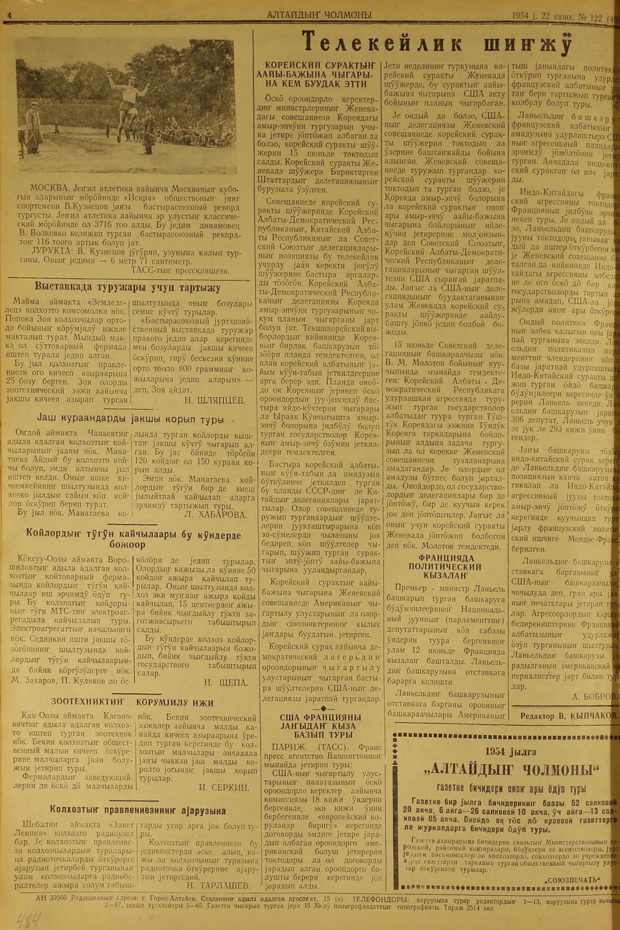 Altaidin Cholmoni/1954/122/