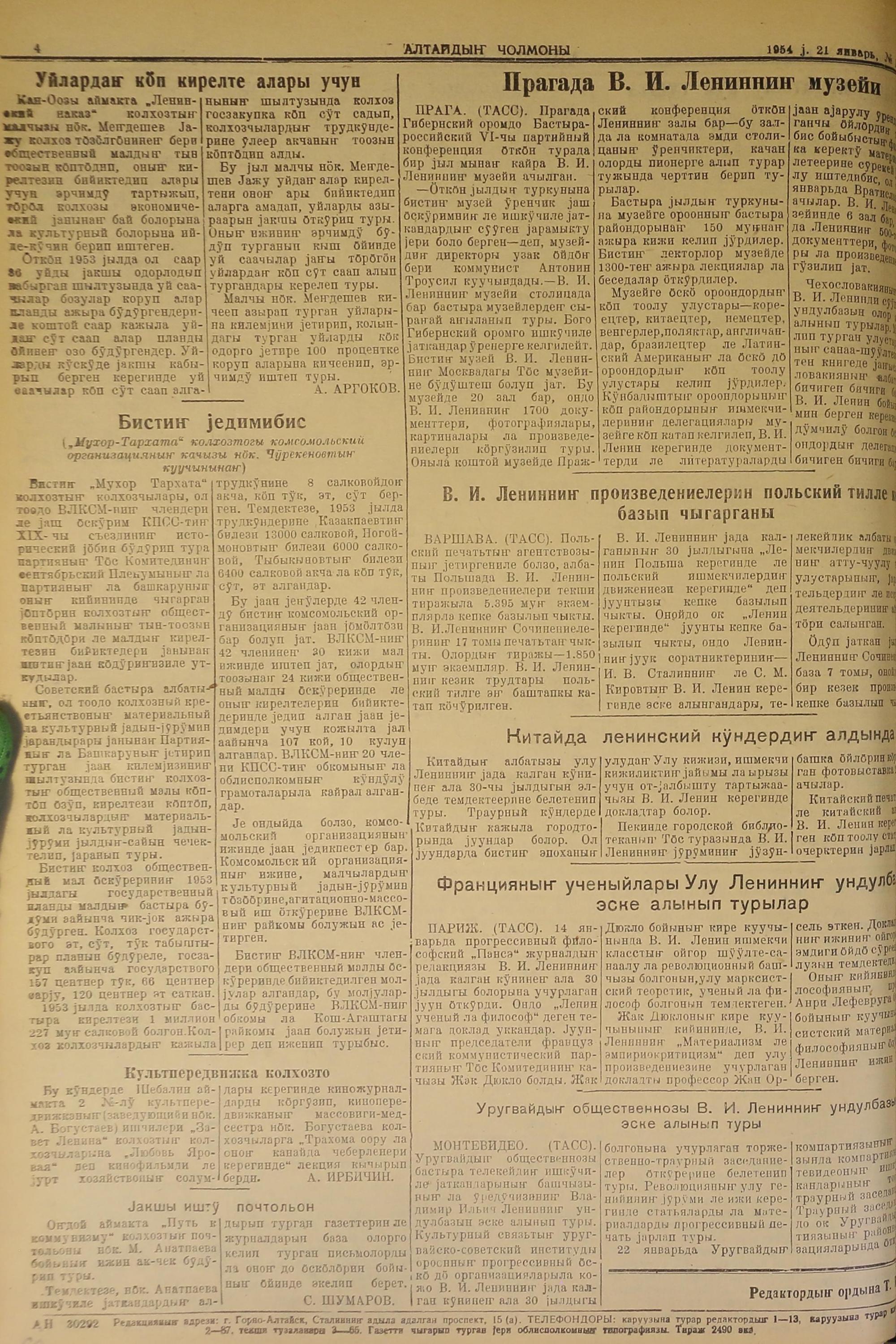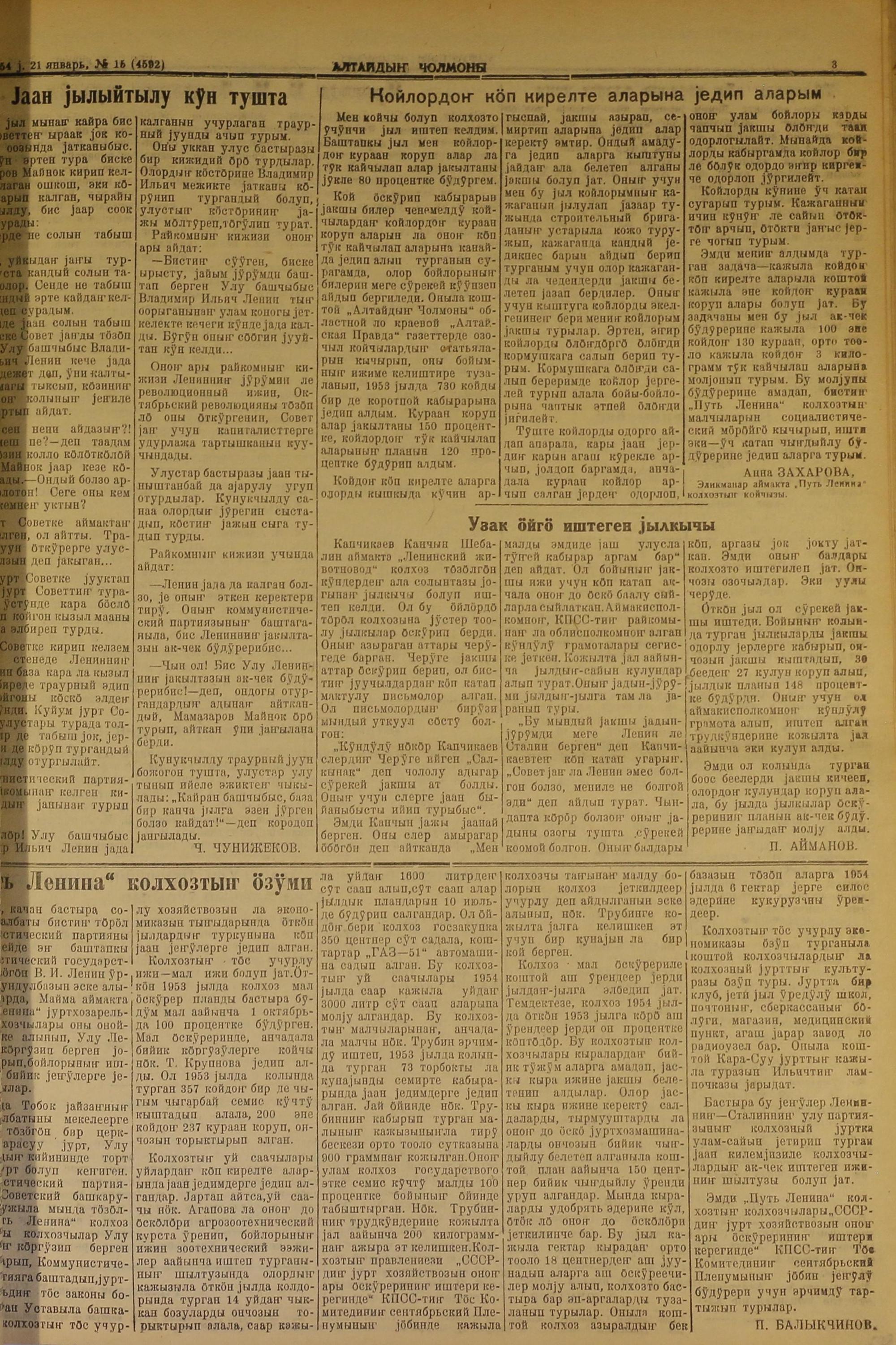 Altaidin Cholmoni/1954/15/