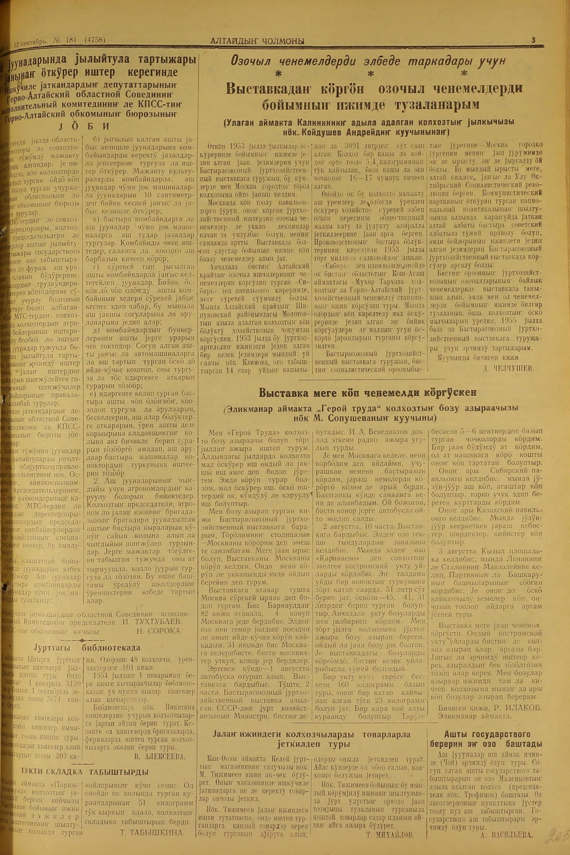 Altaidin Cholmoni/1954/181/
