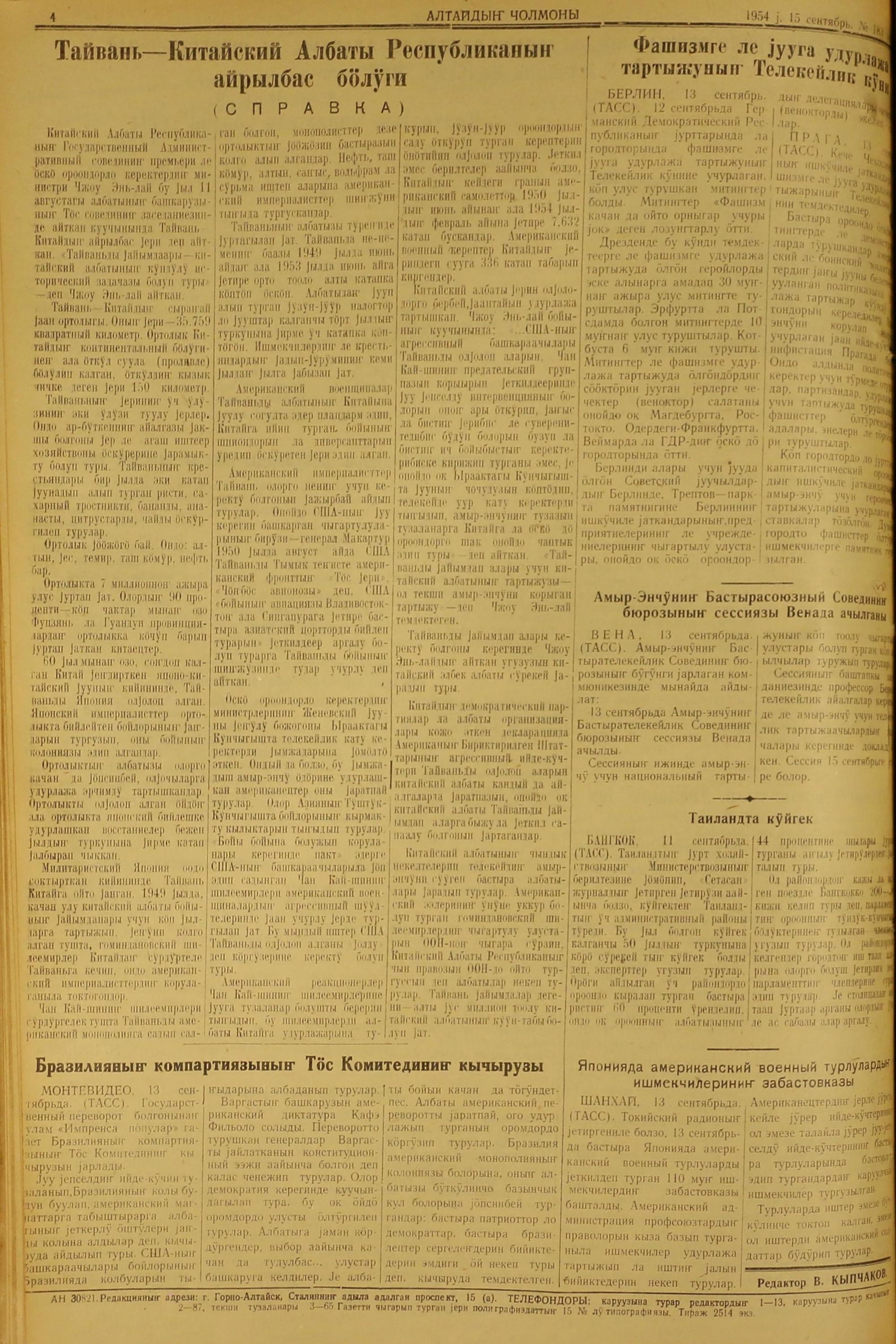 Altaidin Cholmoni/1954/183/