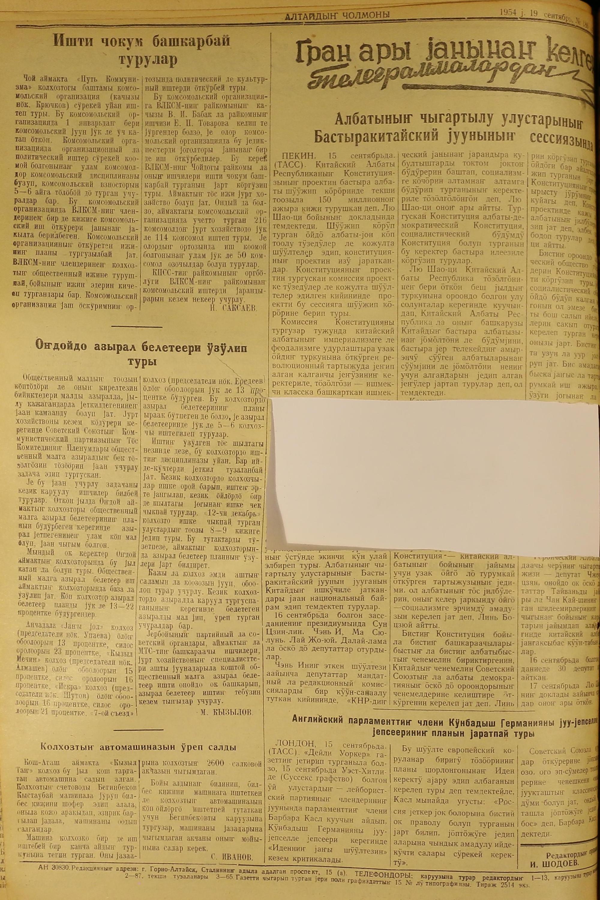 Altaidin Cholmoni/1954/186/