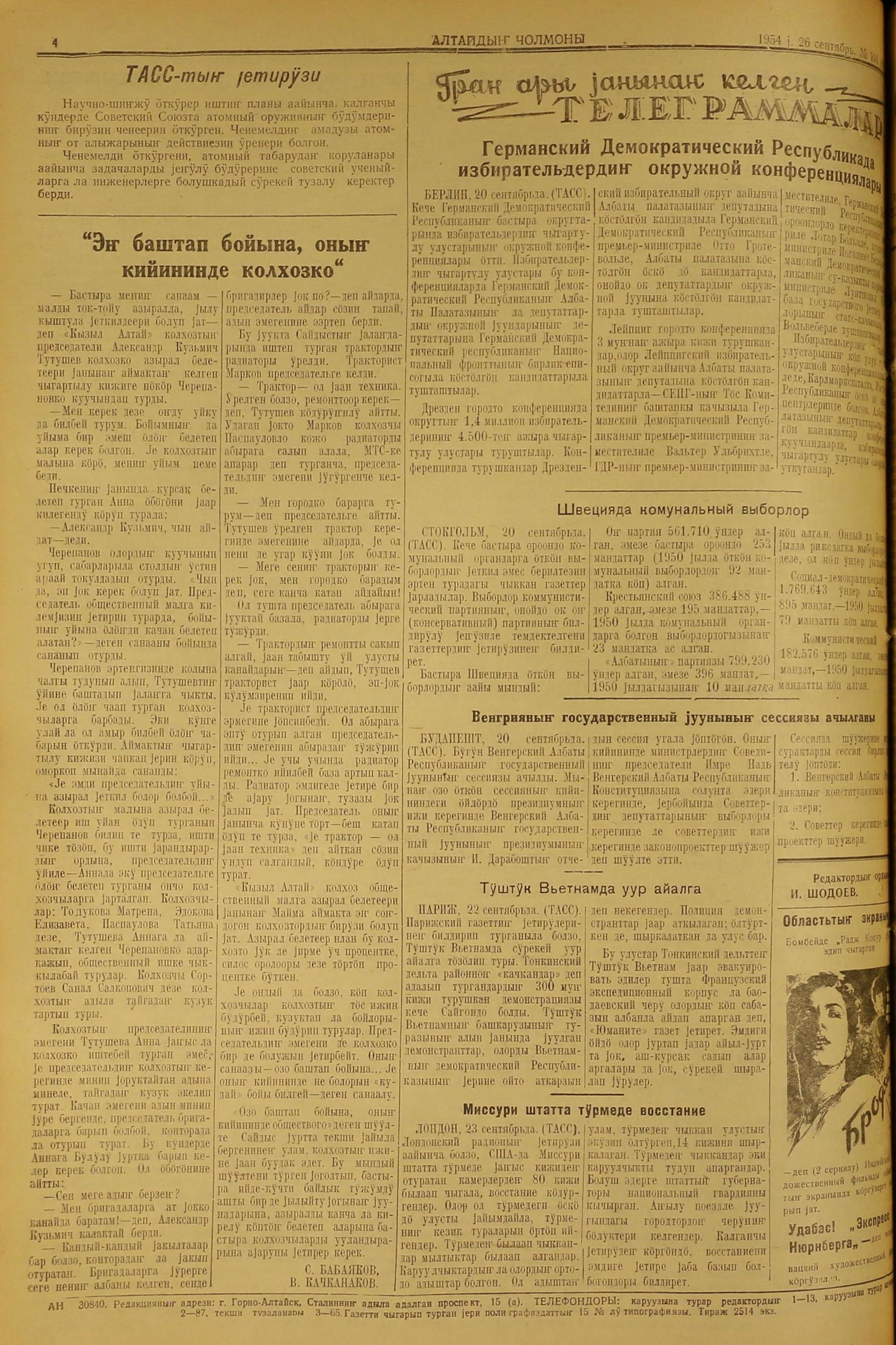 Altaidin Cholmoni/1954/191/