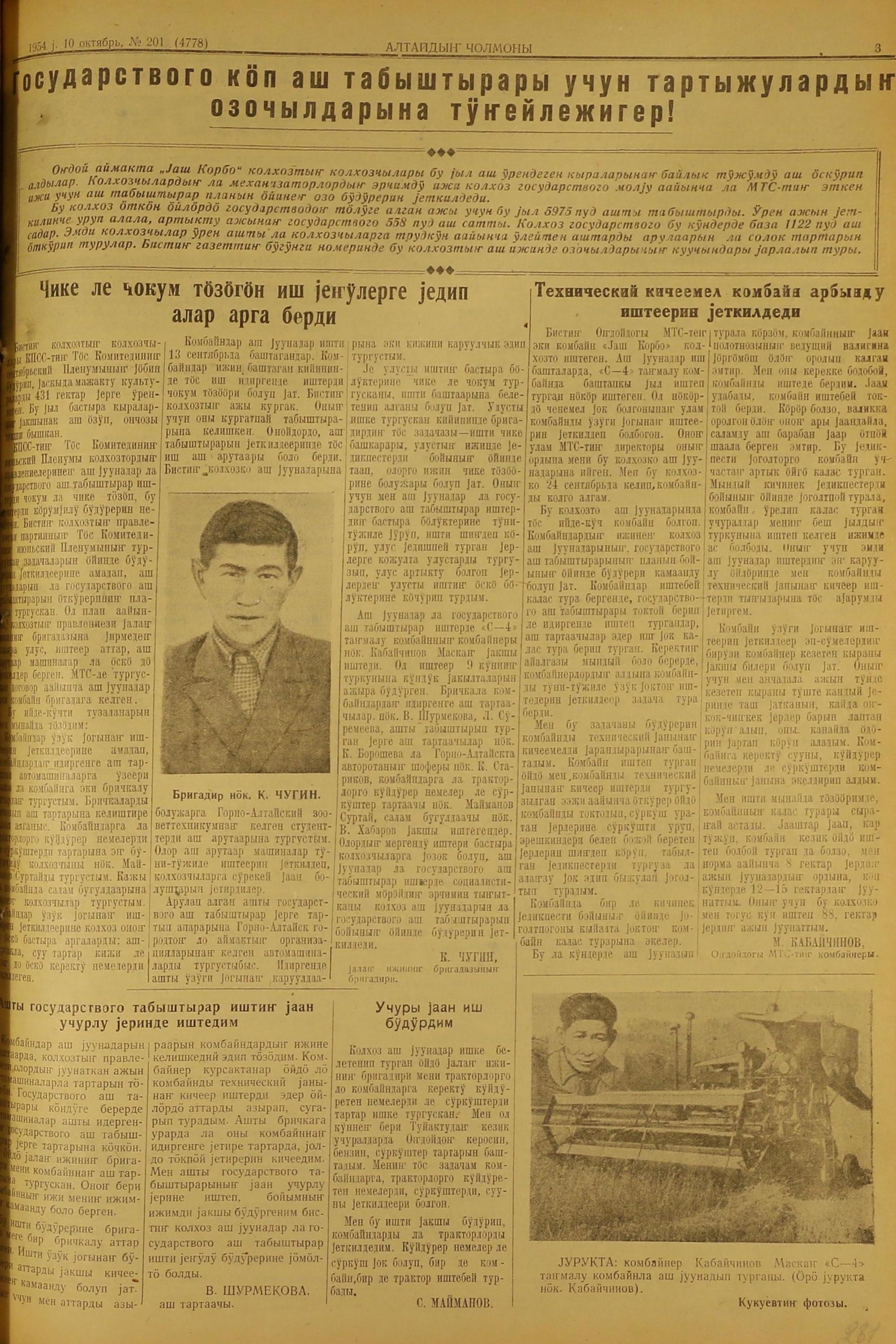 Altaidin Cholmoni/1954/201/