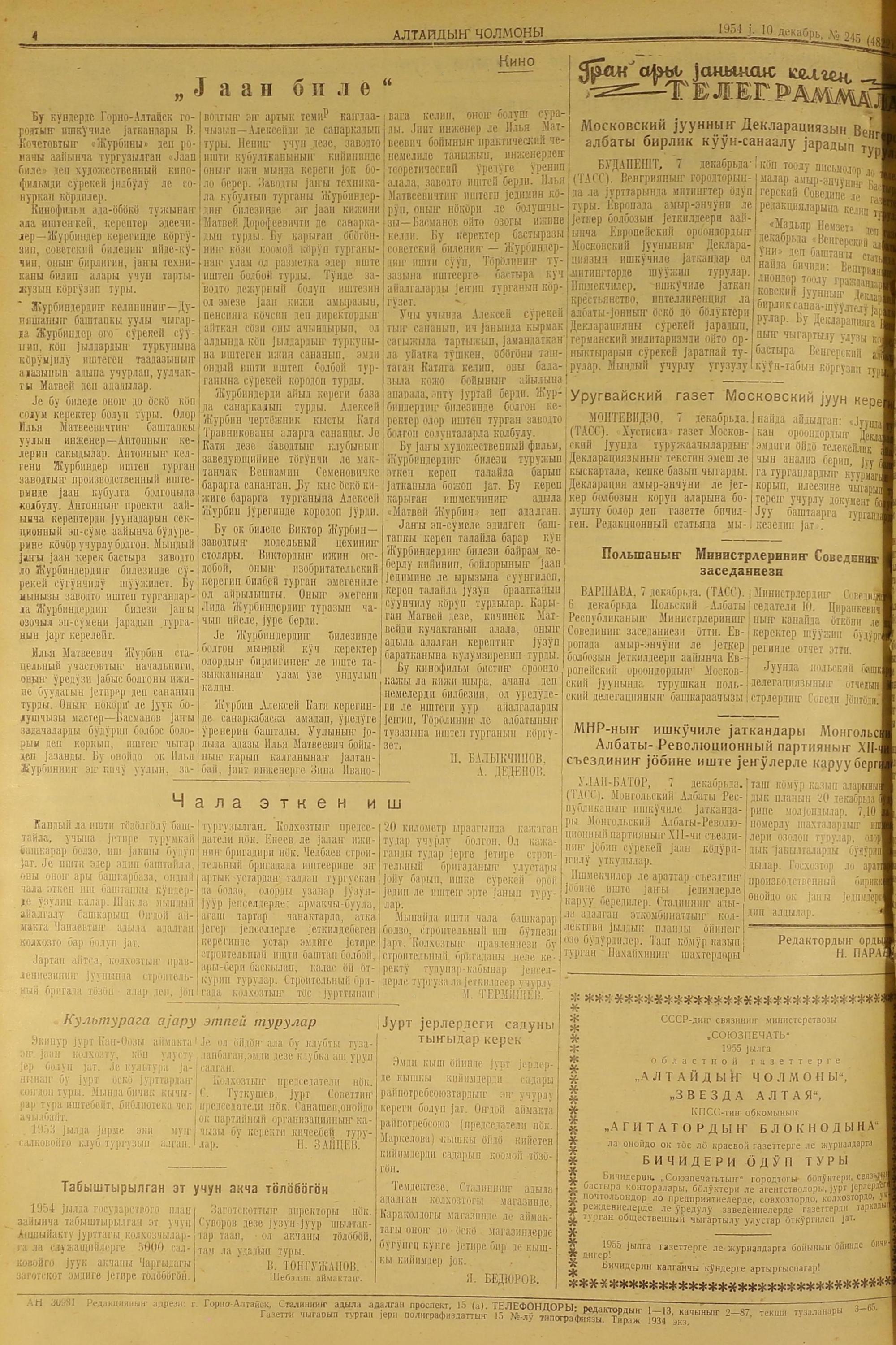 Altaidin Cholmoni/1954/245/