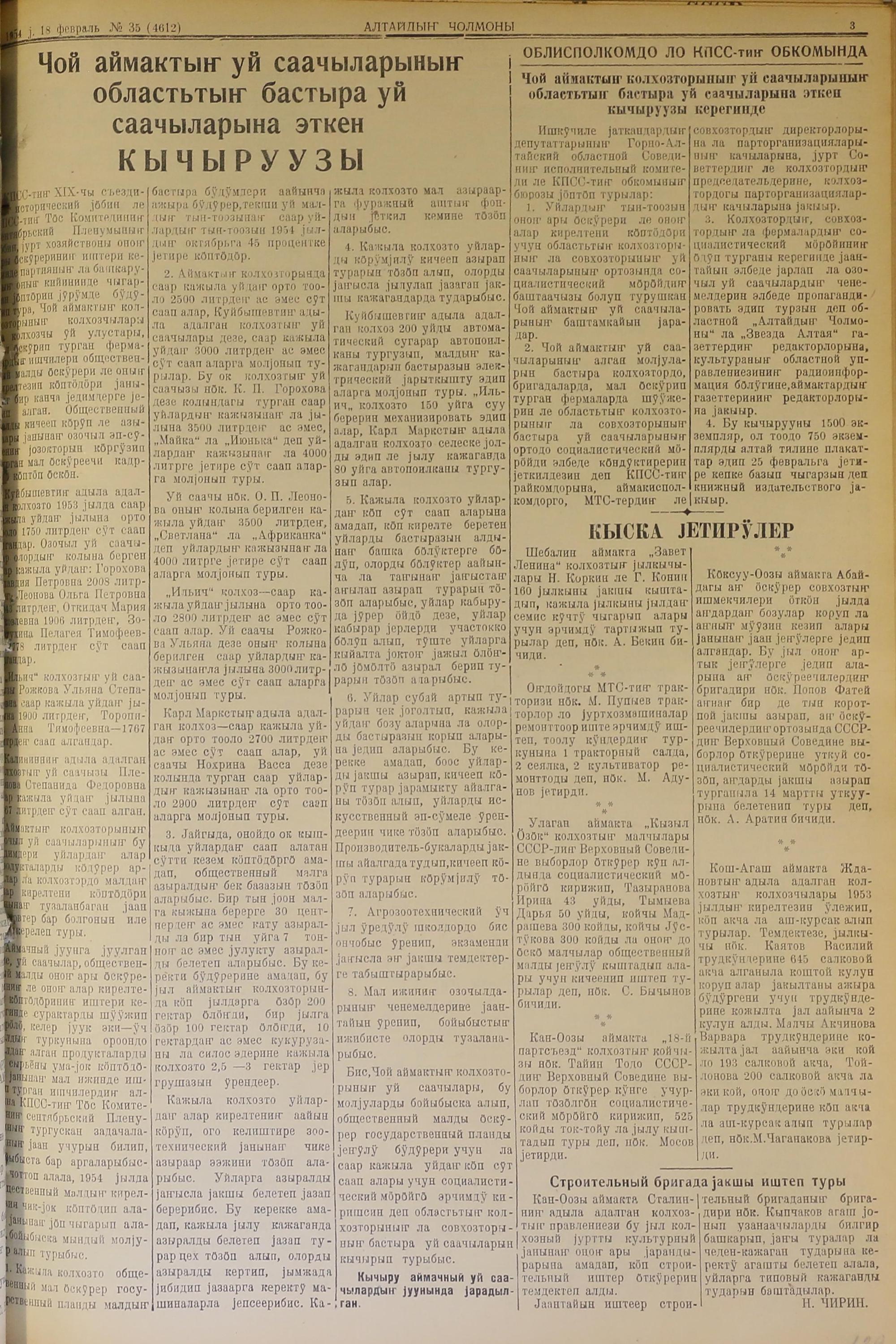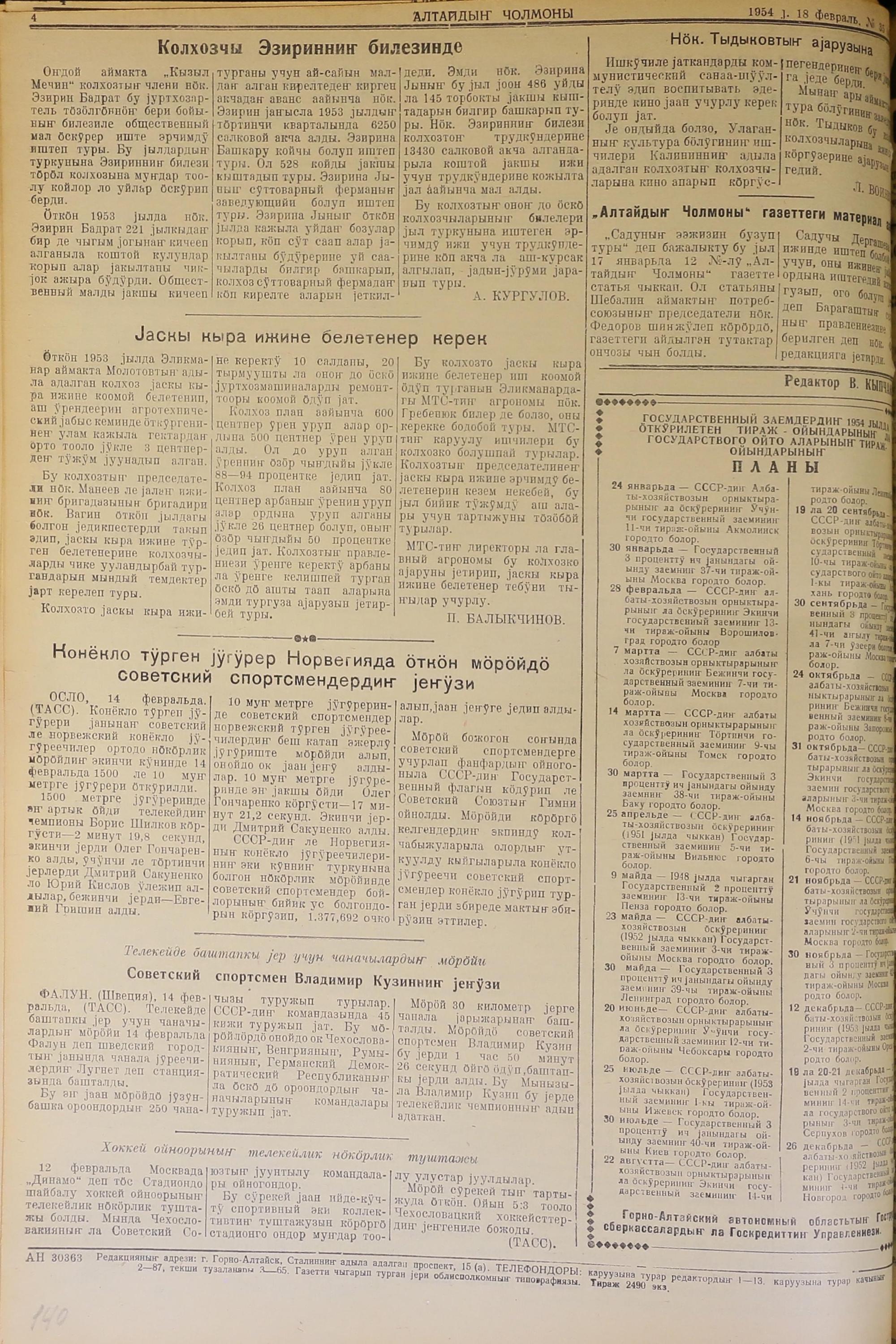Altaidin Cholmoni/1954/35/