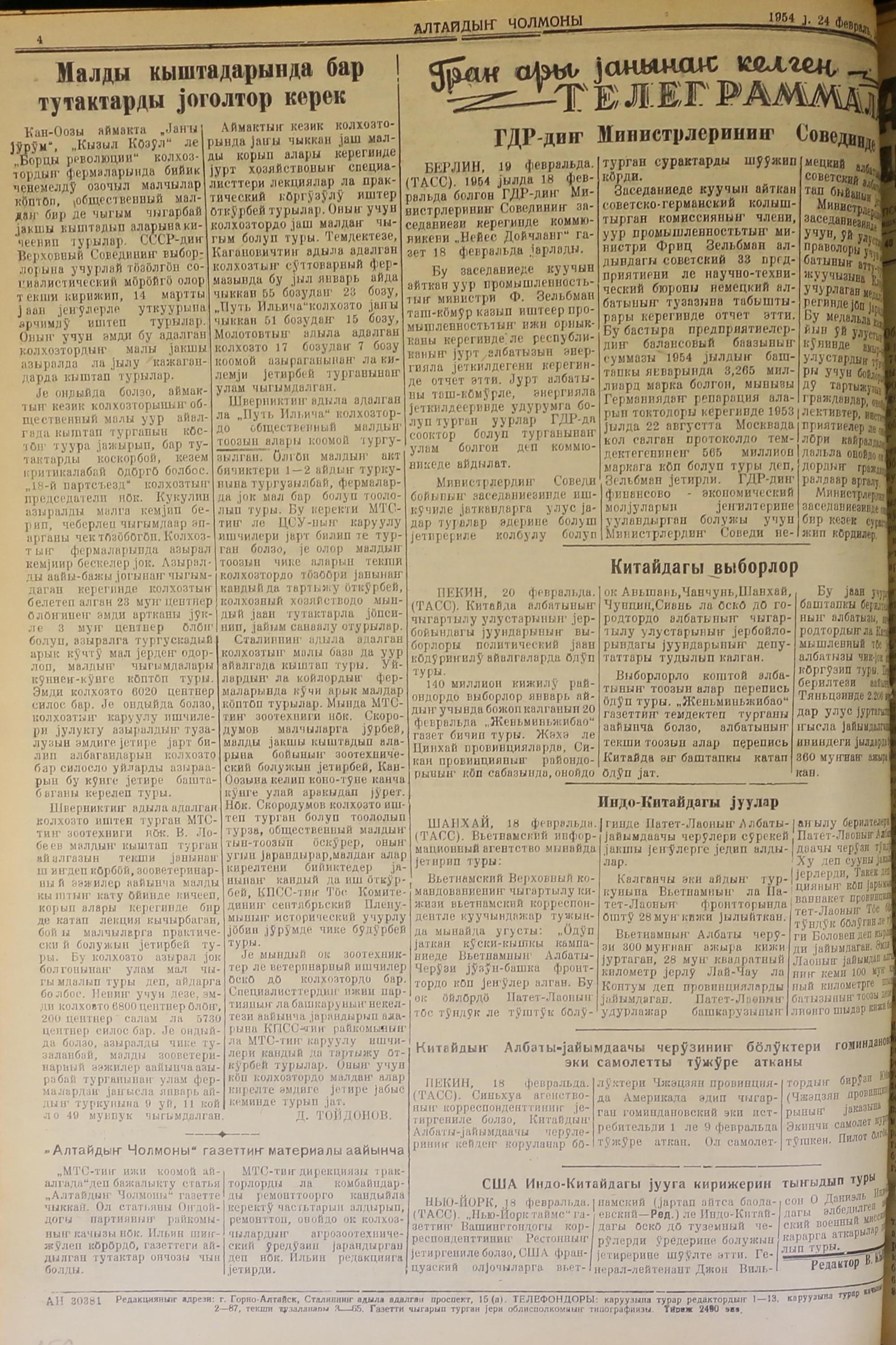 Altaidin Cholmoni/1954/39/