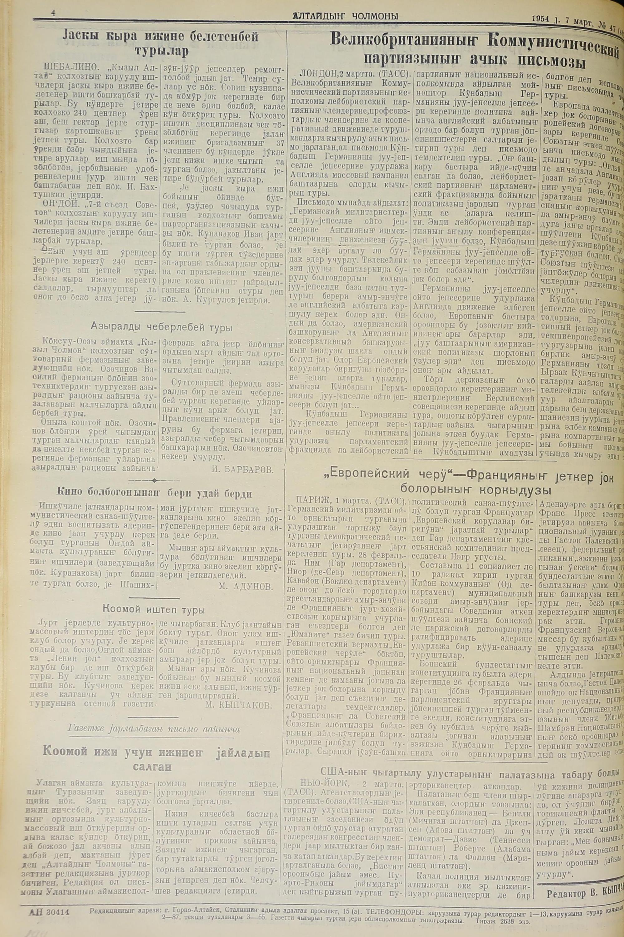 Altaidin Cholmoni/1954/47/