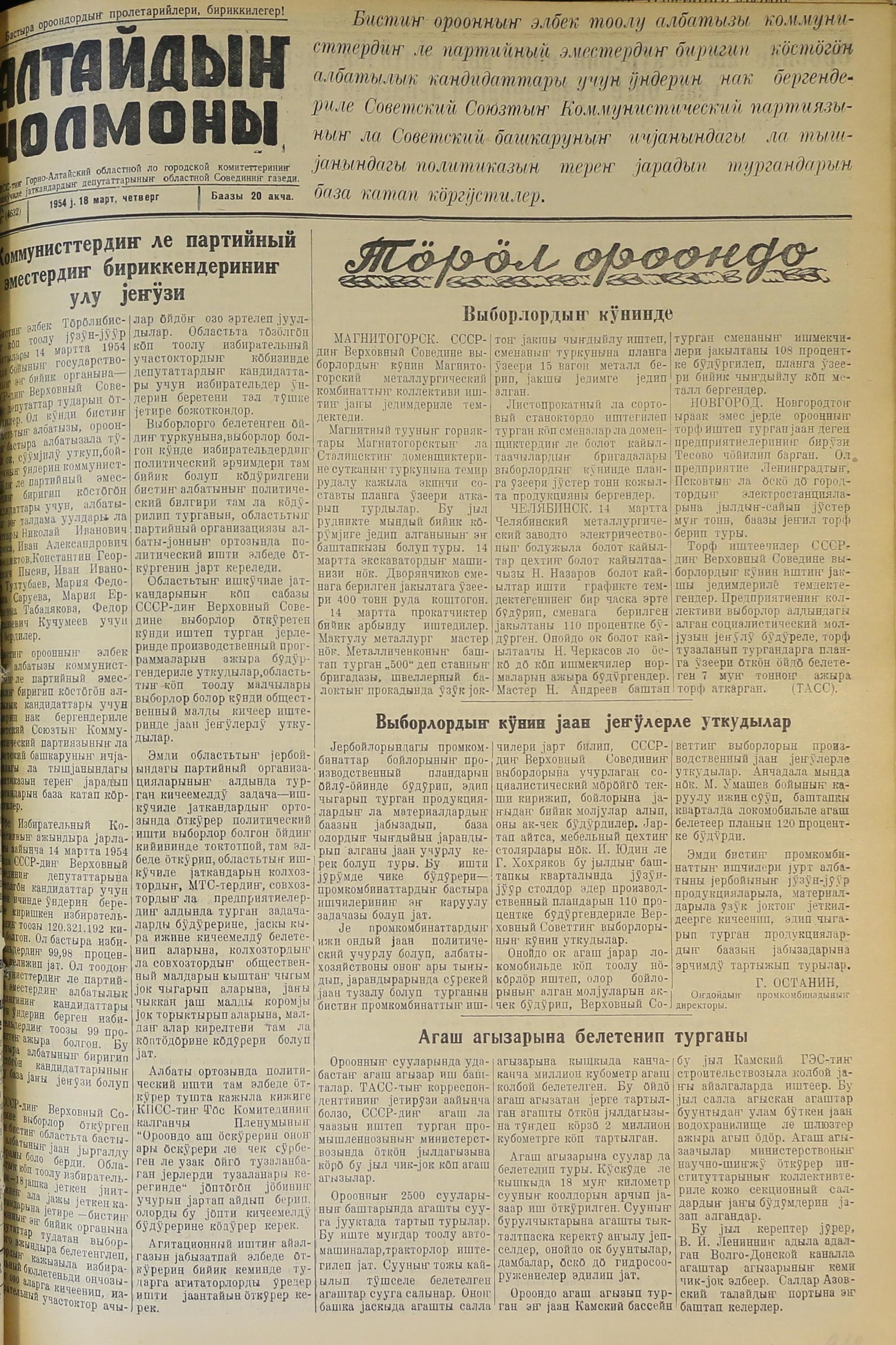 Altaidin Cholmoni/1954/55/
