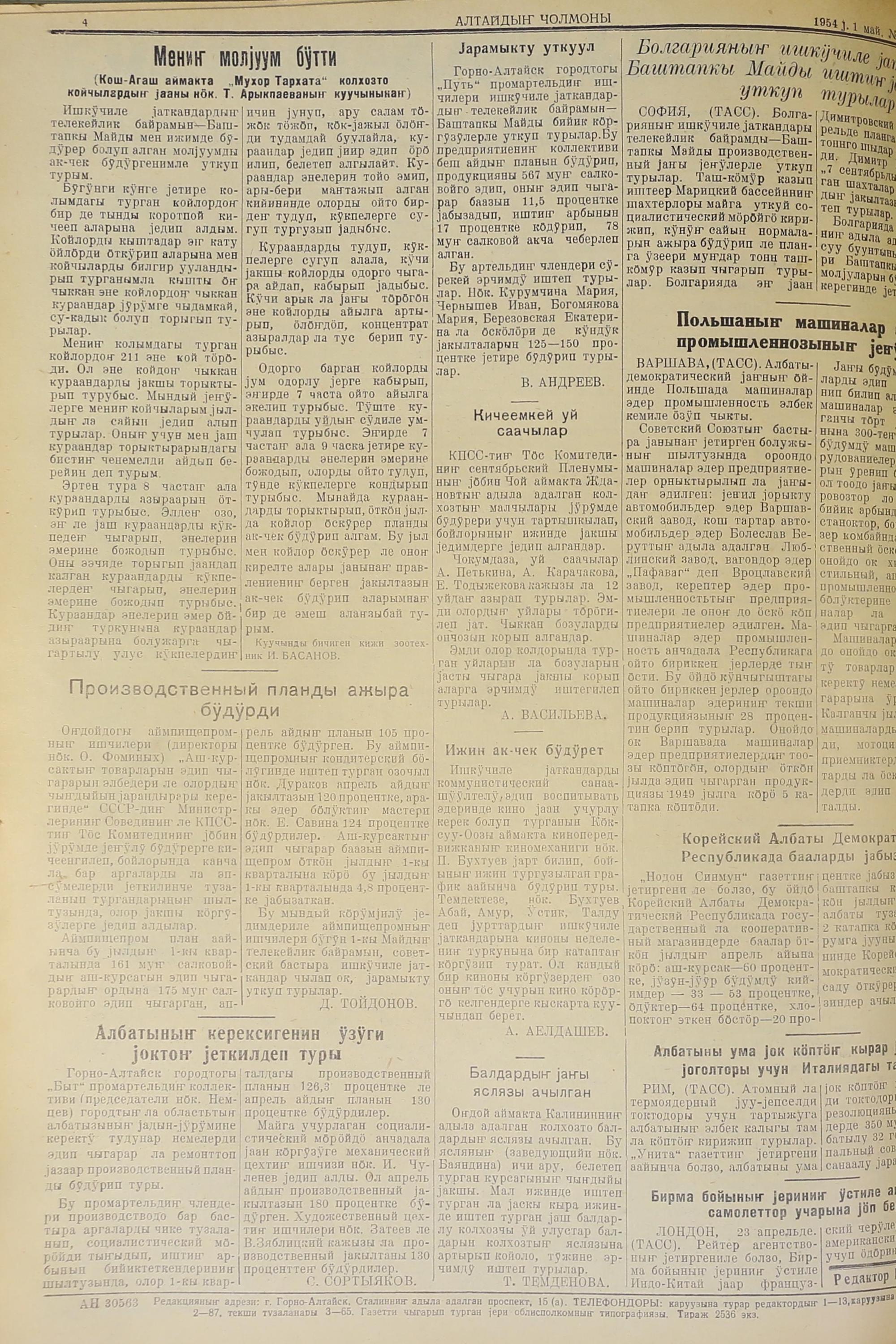 Altaidin Cholmoni/1954/86/