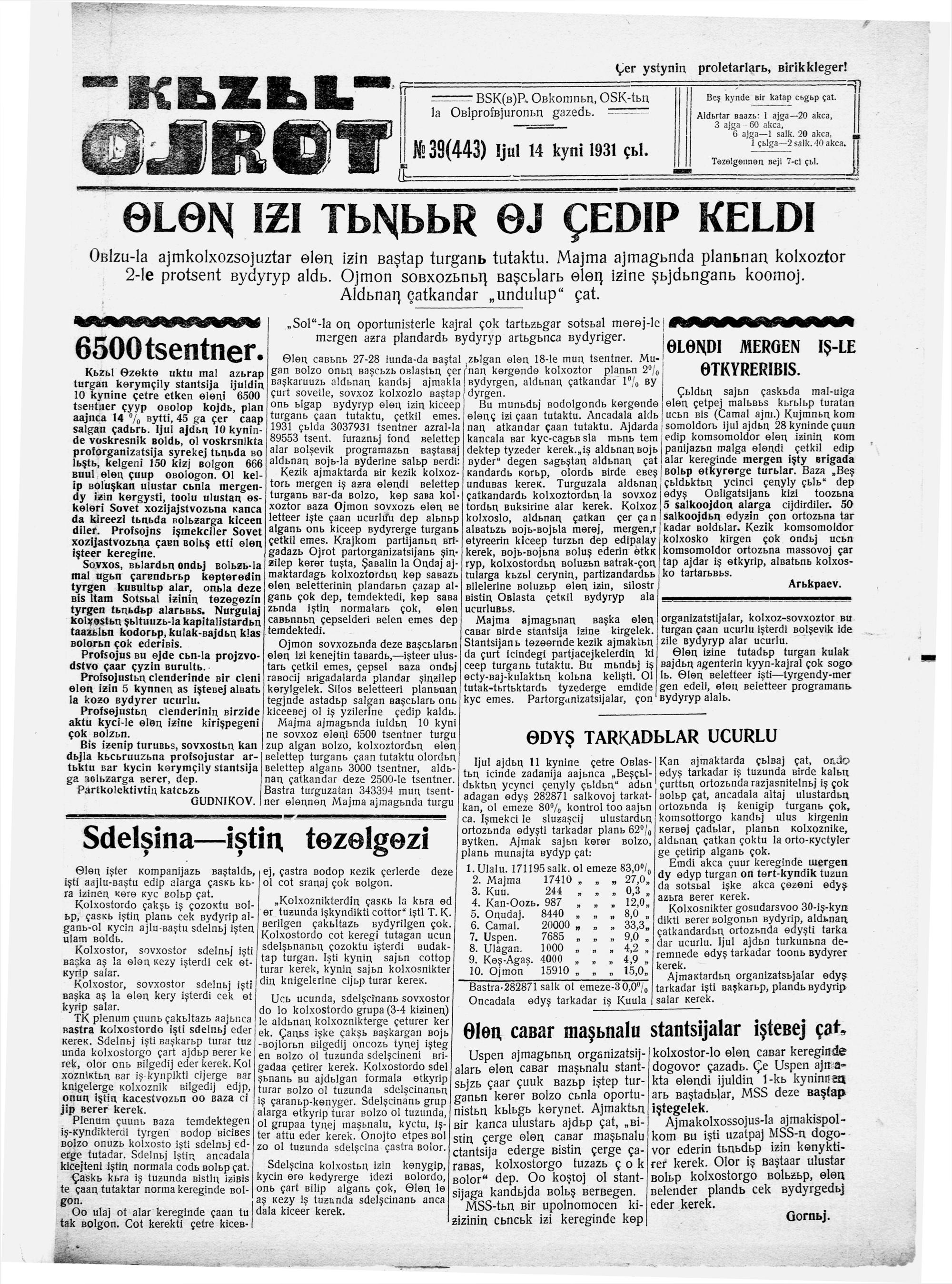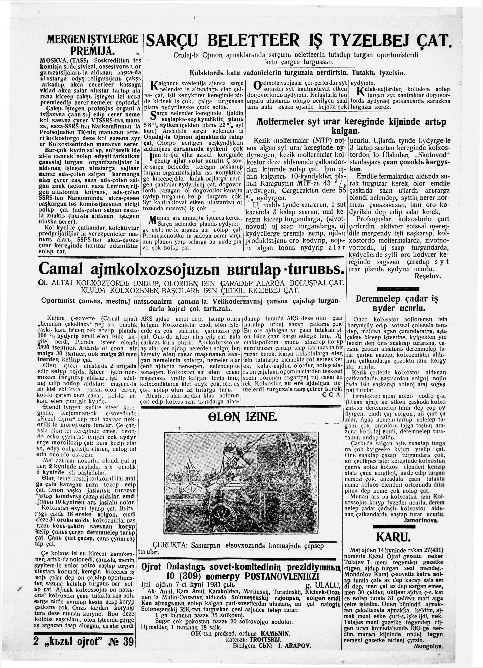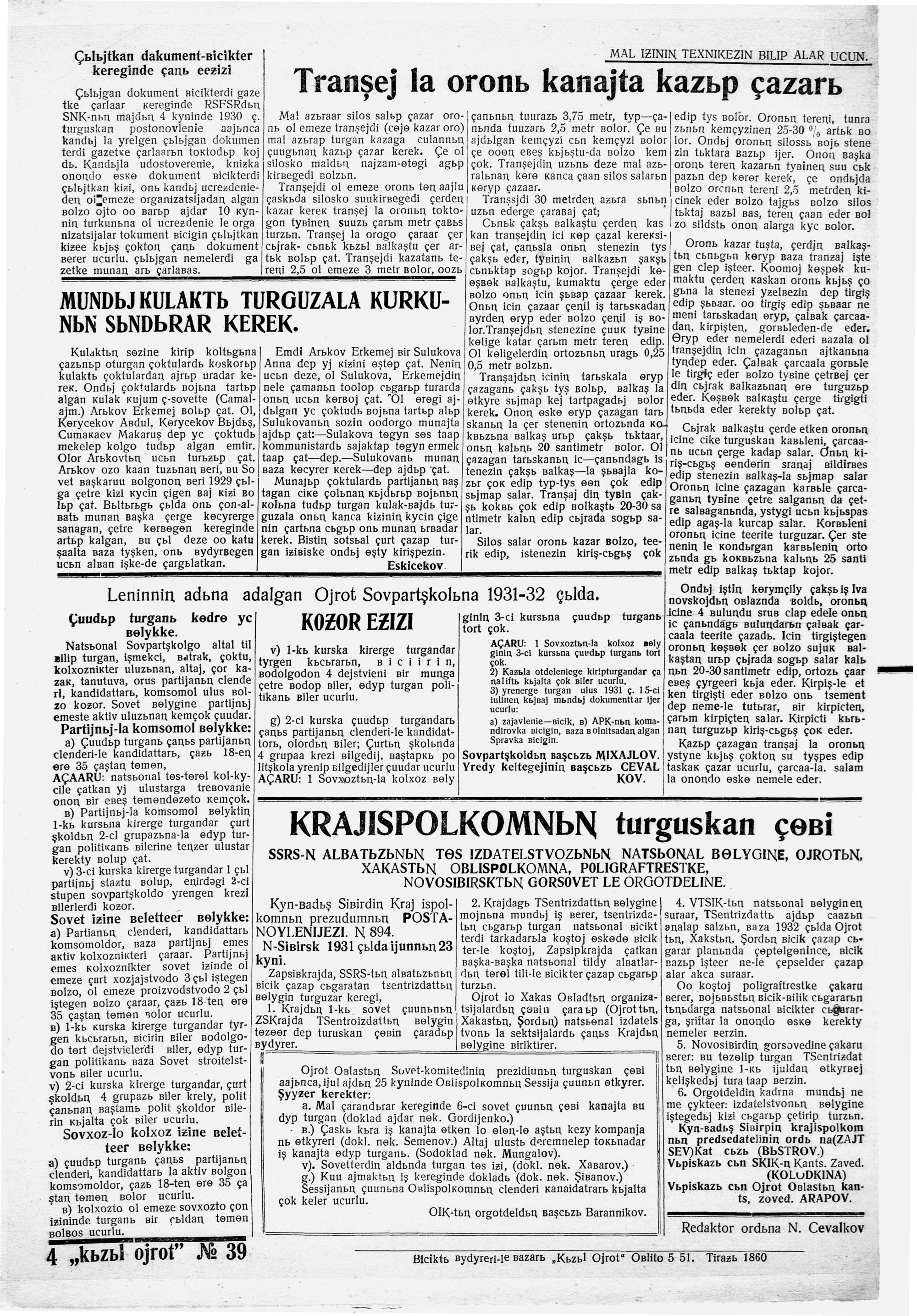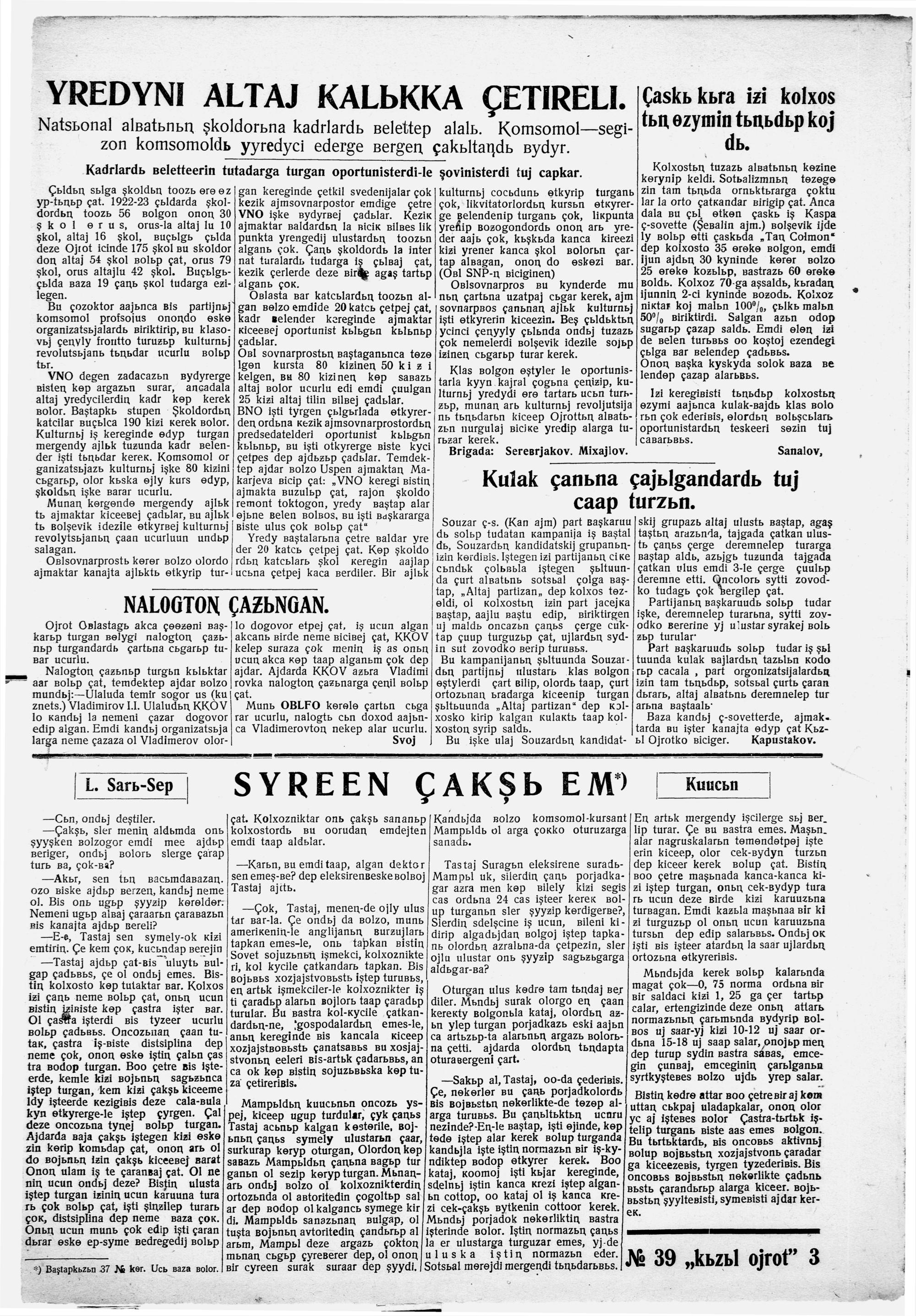 Kizil Oyrot (Latin)/1931/39/