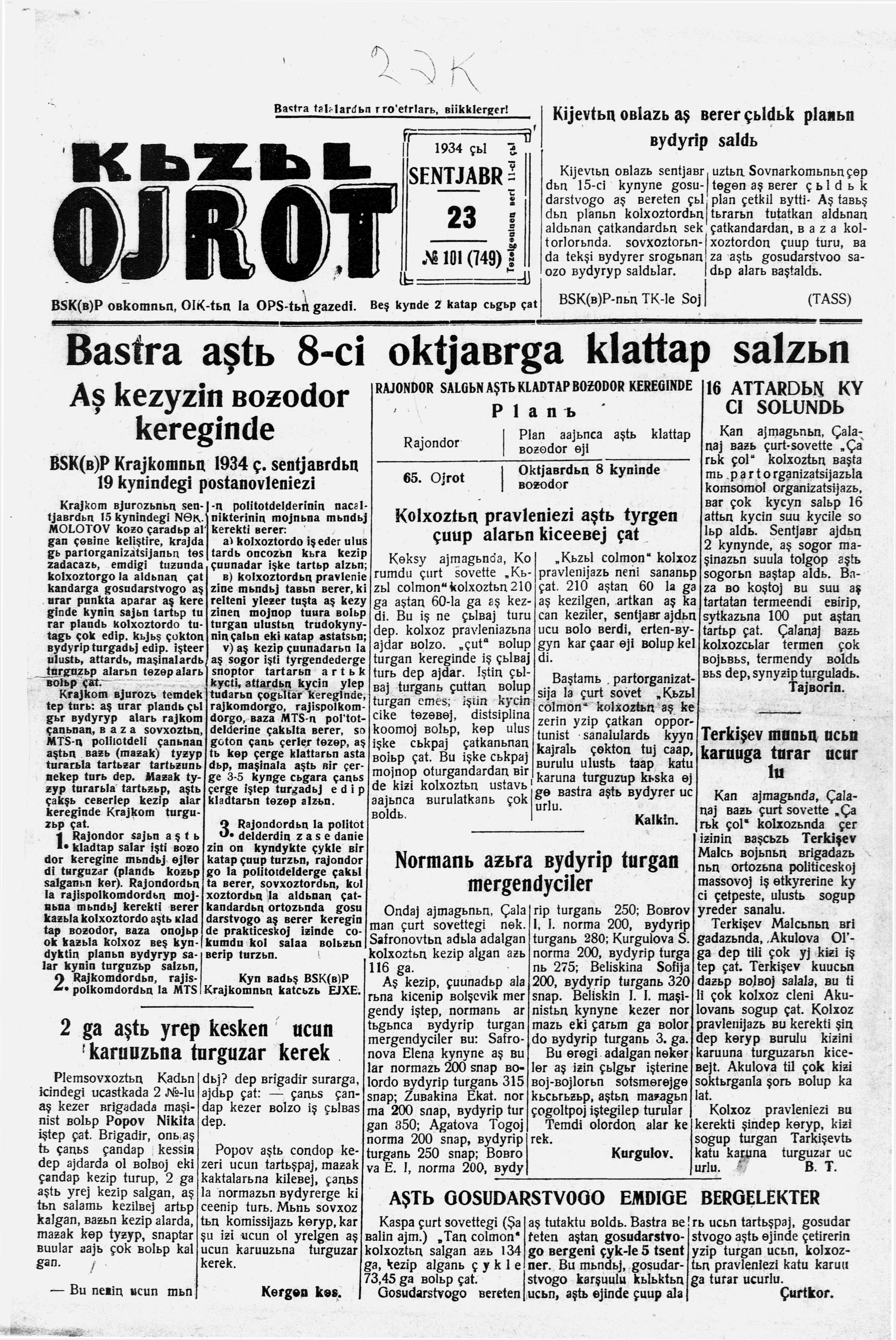 Kizil Oyrot (Latin)/1934/101/