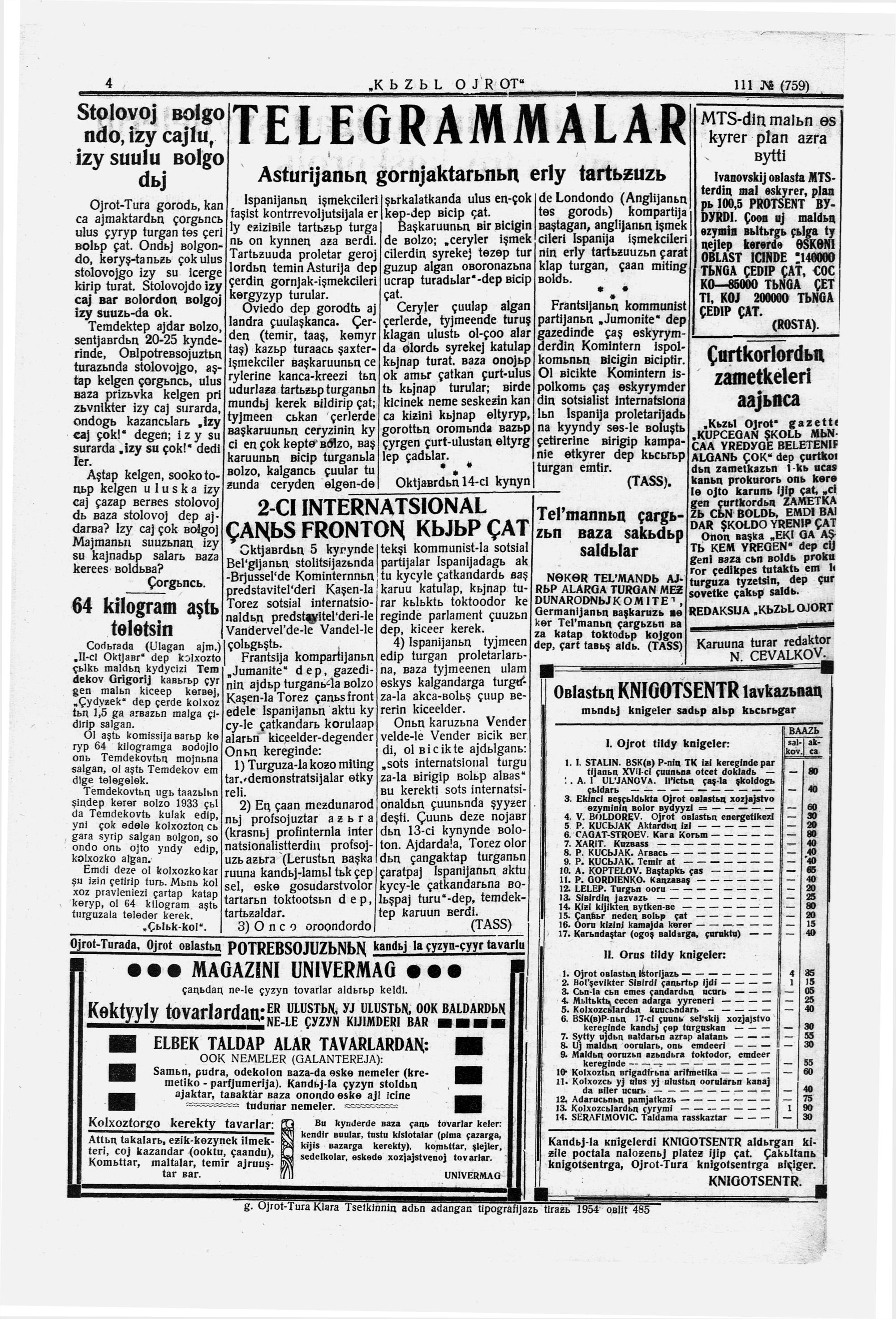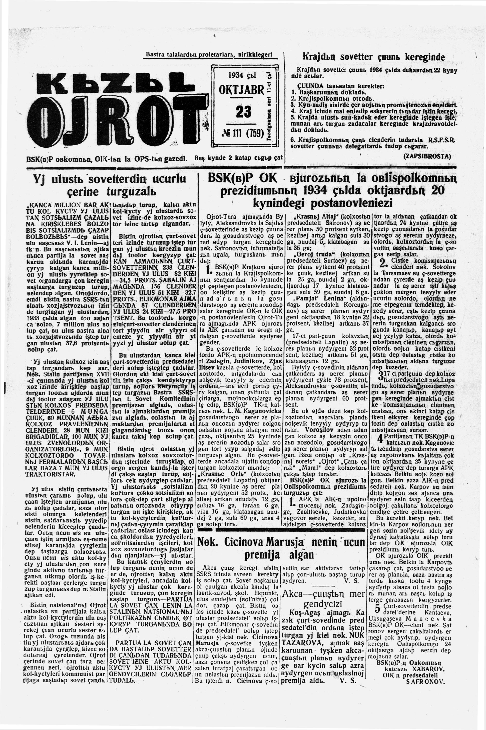 Kizil Oyrot (Latin)/1934/111/