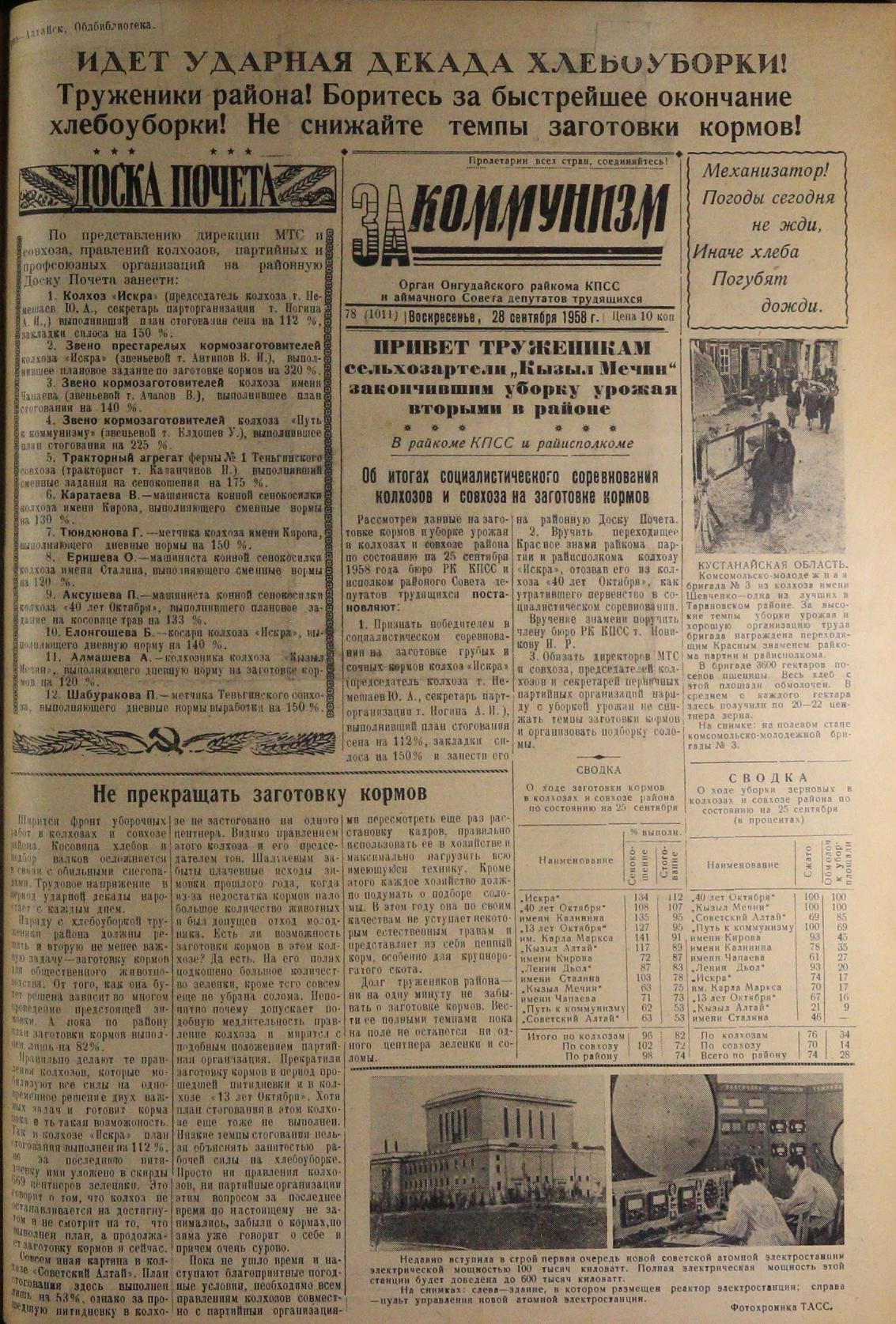 KOMMUNIZM UCUN/1958 (Онгудай)/78/